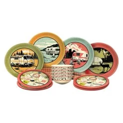 Melamine Dish Set (12 Piece) by Camp Casual®. This dish set complete with four dinner plates, four salad plates, and four bowls all tucked into a reusable carry-all, cardboard case. BPA Free, FDA approved, top rack dishwasher safe and 100% sturdy melamine!