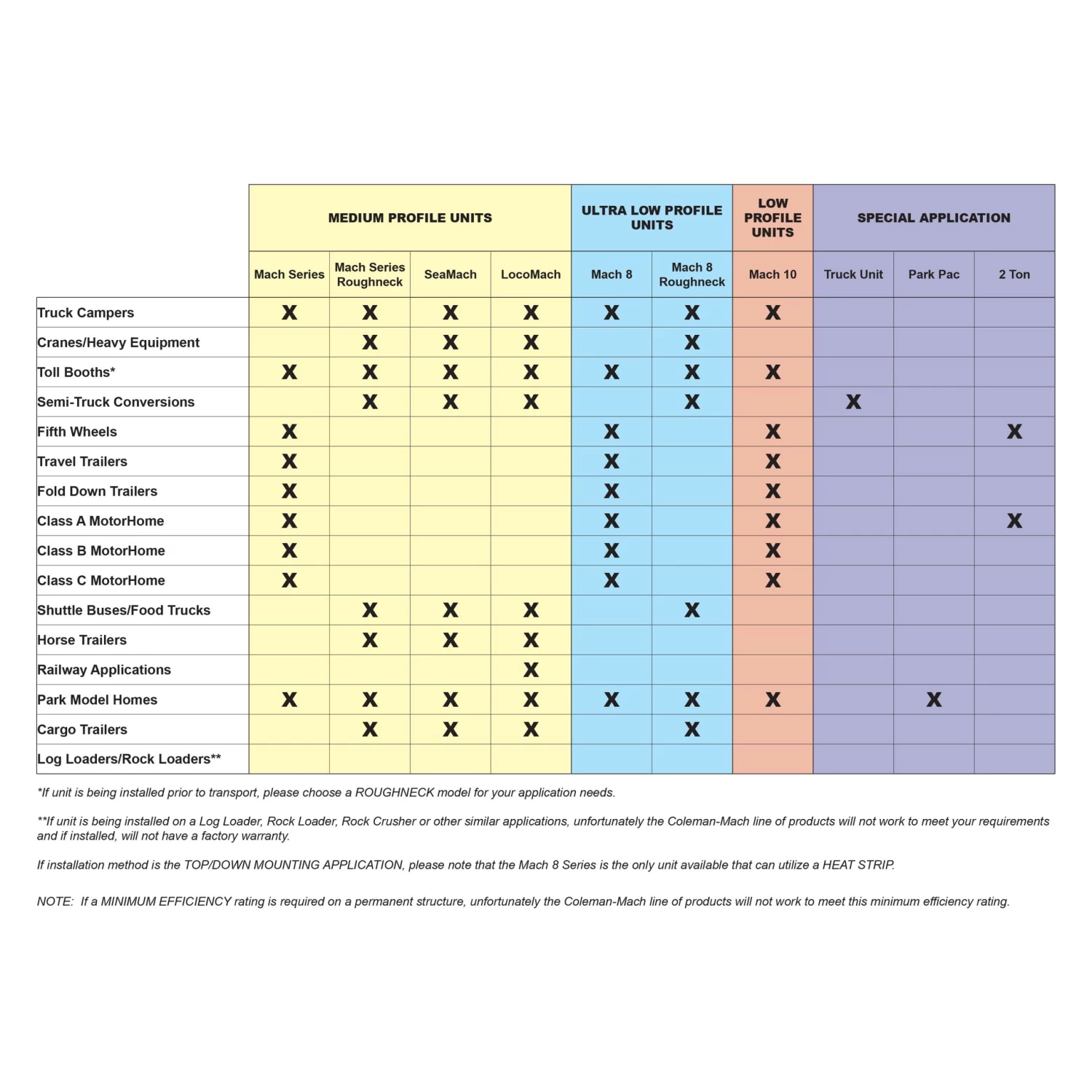 The history of Coleman-Mach® dates back to 1966 when Sheldon Coleman decided to design an air conditioner that would help him sleep in the motor coach comfortably. In 1967, the Coleman Company introduced and sold their first RV air conditioner called the PolarPal. Since that time, the Coleman-Mach name has remained the leader in the RV industry. By now the company has built over 6,000,000 air conditioners in its factory in Wichita, Kansas. Most of them are still on the job producing cool comfort for RV enthusiasts. Along with air conditioners, Coleman-Mach offers a lot of related accessories, including heat pumps, ceiling assemblies, thermostats, and much more. All products are made using cutting-edge technology to provide unbeatable performance and efficiency.