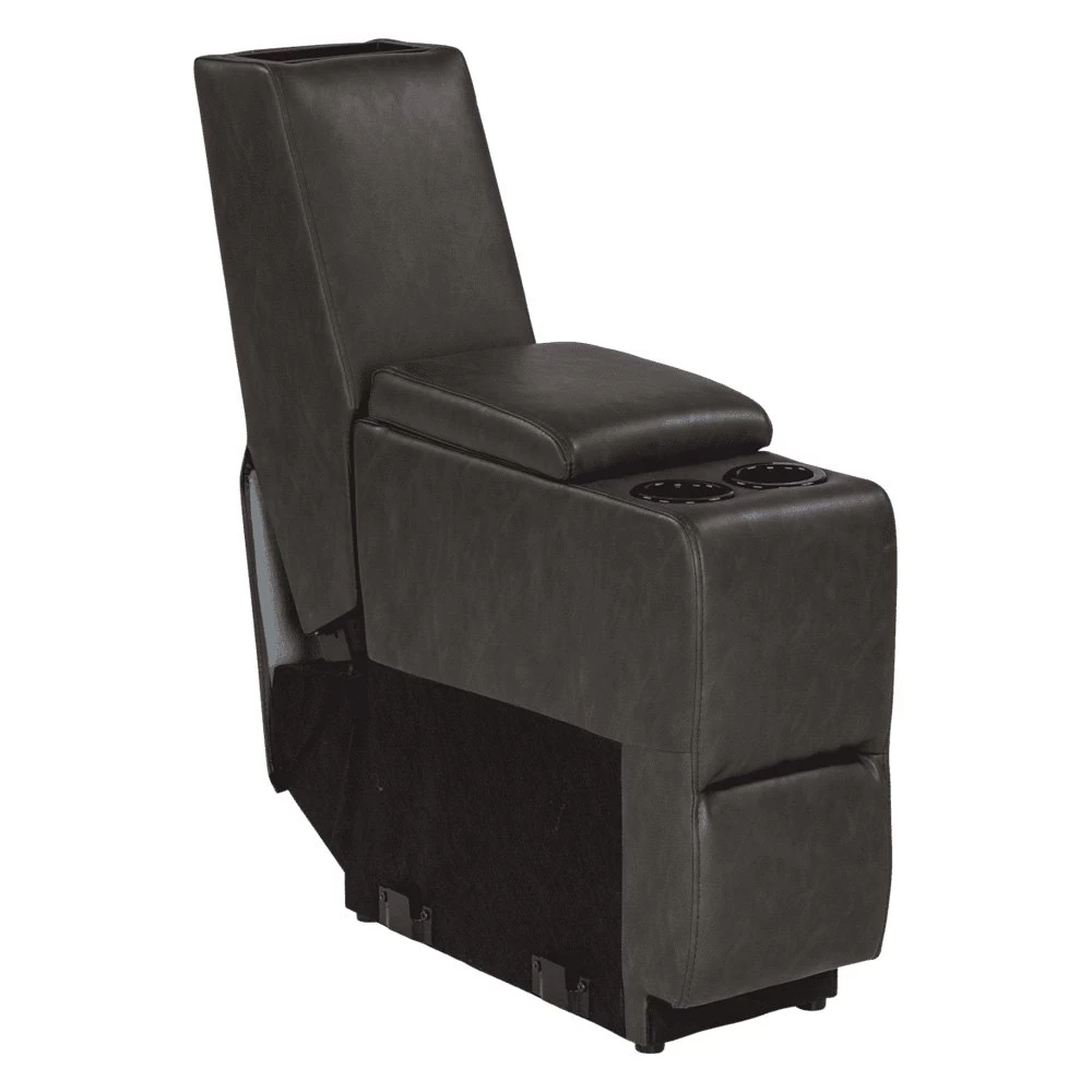 Heritage Series Millbrae RV Theater Seating Center Console (2020129264) by Thomas Payne®. Take your RV’s interior to the next level with Heritage Series Theater Seating Collection. This modular furniture lineup allows you to mix and match various pieces to create the perfect living space inside your travel trailer, 5th wheel, or motorhome. You can configure this furniture line up to meet your exact RV interior needs. Featuring a wireless phone charging station, integrated storage compartment, a chaise-style footrest, fold-down center console with dual recessed cupholders, and removeable chair backs for easier installation, this furniture is guaranteed optimize your comfort, no matter where the open road takes you next.
