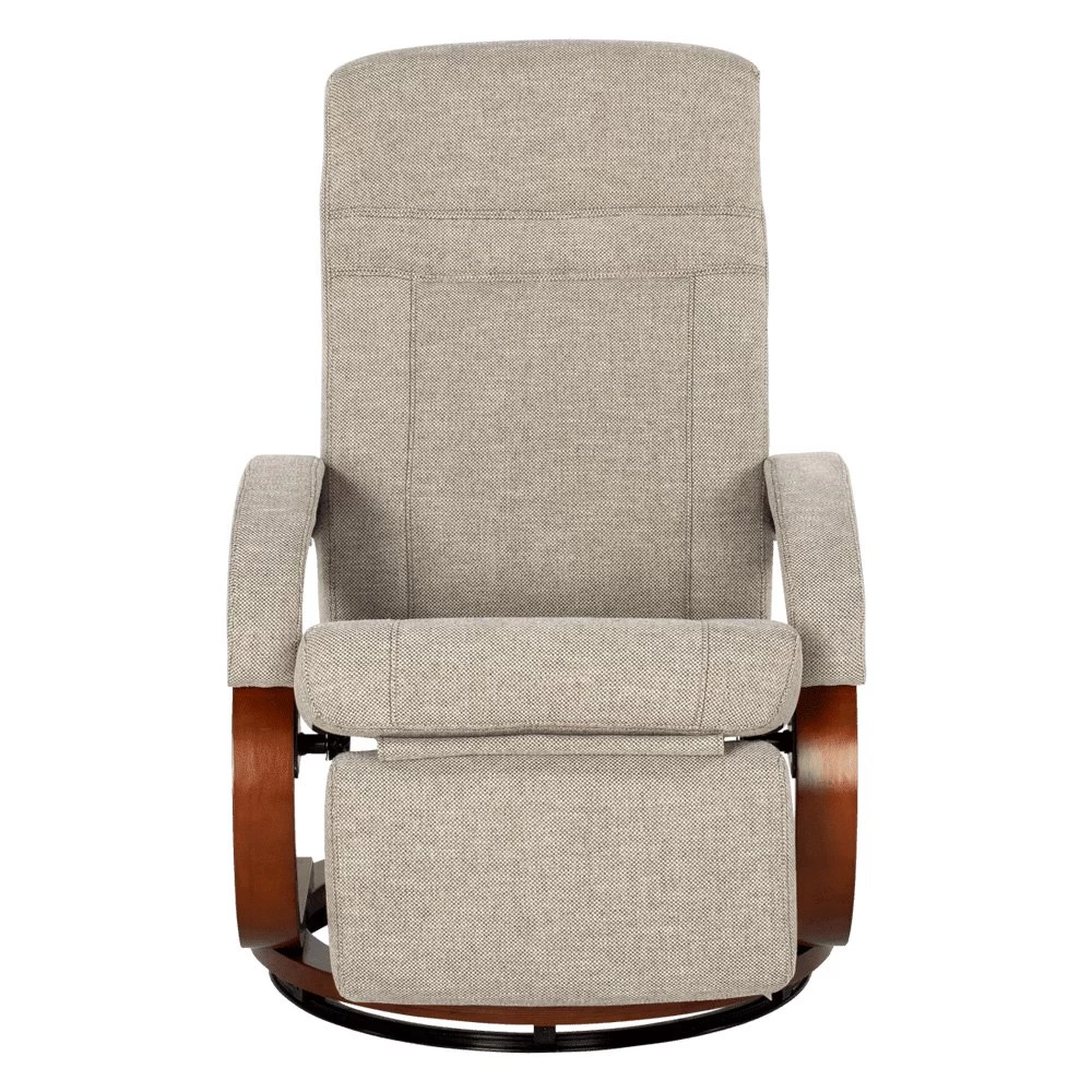 Norlina Euro Chair RV Recliner with Footrest by Thomas Payne®. Combines a sleek, stylish look with all the comfort you’d expect from Thomas Payne. This compact camper recliner comes with a 360-degree swivel, footrest, and easy-to-operate, manual recline that extends to 59″. Complete with a padded headrest and armrests, as well as a contouring backrest, the Euro Chair is the ultimate in functional design. Guaranteed to be a perfect upgrade for your 5th wheel RV, travel trailer, or motorhome!