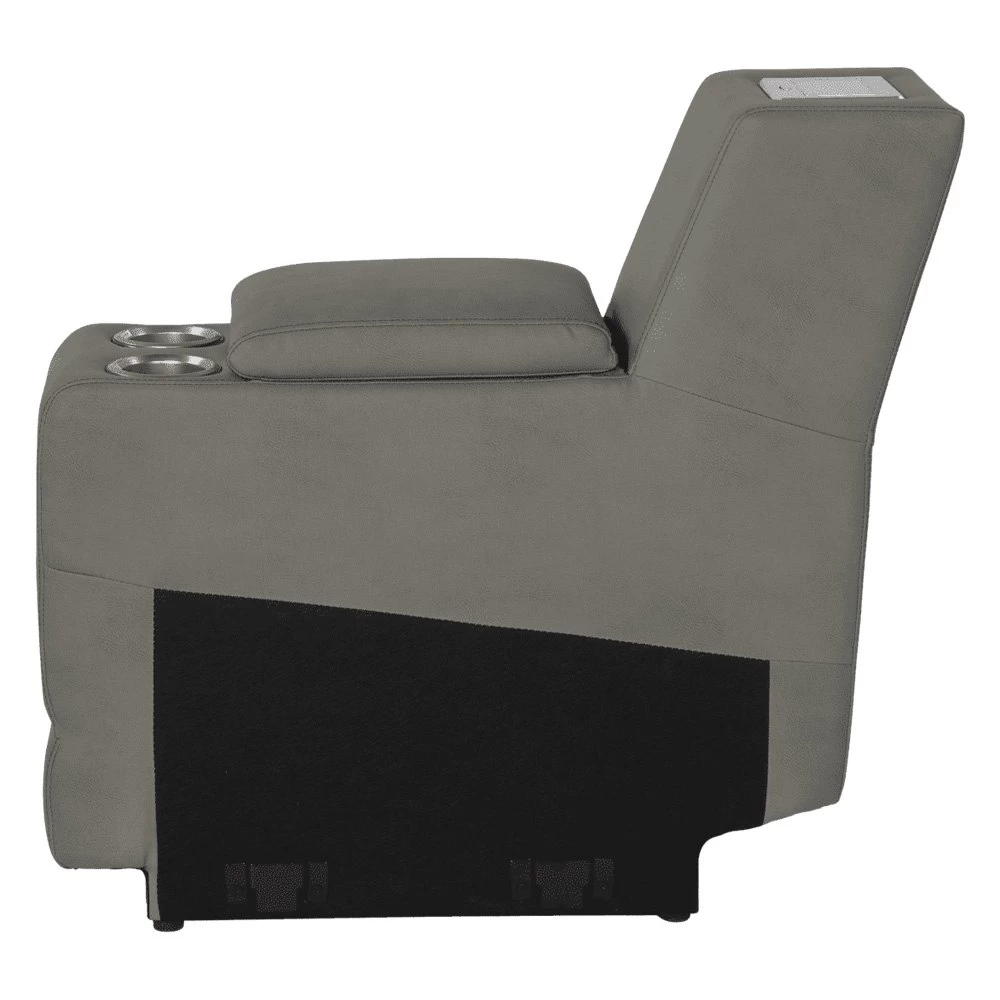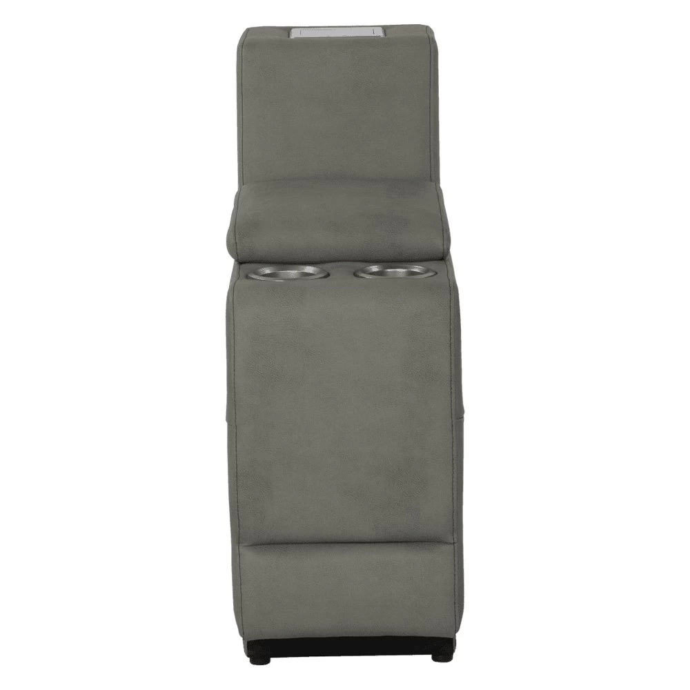 Seismic Series Grummond RV Theater Seating Center Console by Thomas Payne®. Seismic Series Theater Seating turns your RV living space into a high-tech, extra-cozy relaxation sanctuary. Featuring the all-new Thomas Payne Power Port, the best part about this theater-style sofa is that you can conveniently add new line of Thomas Payne accessories to your living space. From wine holders and desks to a wireless phone charger, reading light, armrest tray, and fan – all you have to do is plug your accessory into the Power Port and enjoy. Comes with fully equipped power recline?and lumbar functionalities, heated seats and massage options,?a chaise-style footrest, LED lighting, lighted?dual?cupholders, an integrated storage compartment, and fold-down center console.